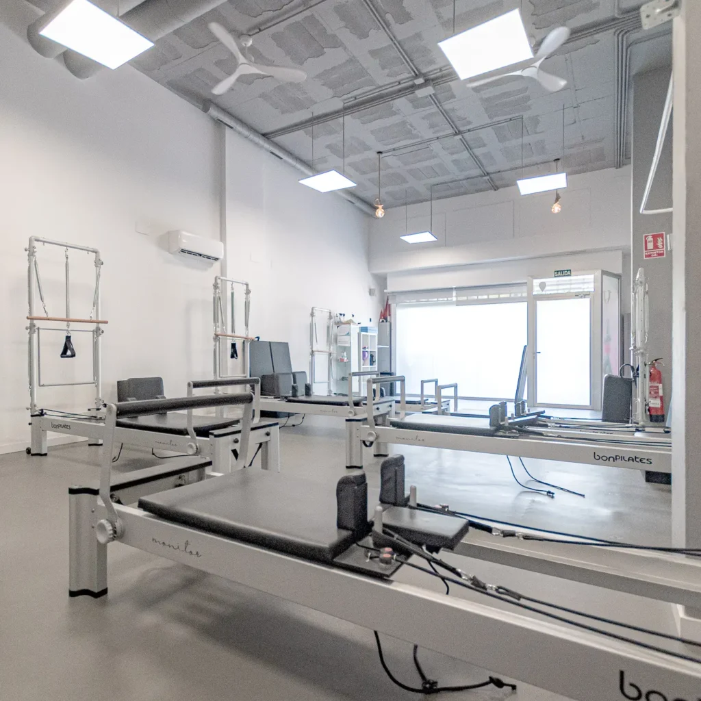 En Fisomovement te ofrecemos dos espacios únicos pensados para tu bienestar. Nuestro local en PAU5 está especializado en Pilates Máquina | Pilates Reformer, en un ambiente acogedor y exclusivo. A unos pasos, nuestro segundo centro en NOU NAZARETH —más amplio y versátil— reúne la clínica de fisioterapia, la gran sala para clases grupales y tres gabinetes privados para consultas personalizadas.